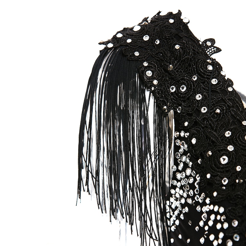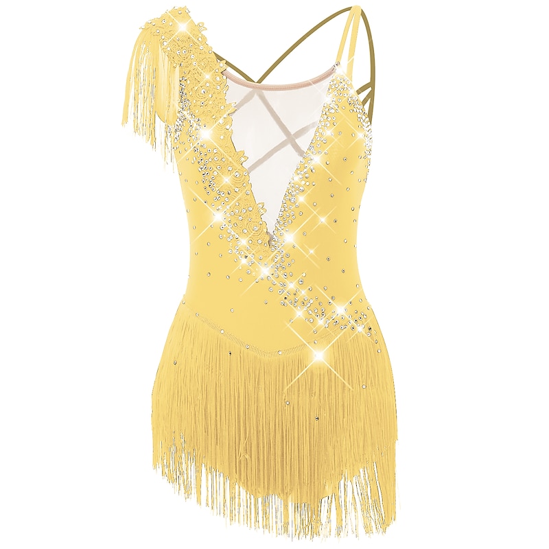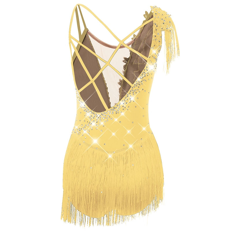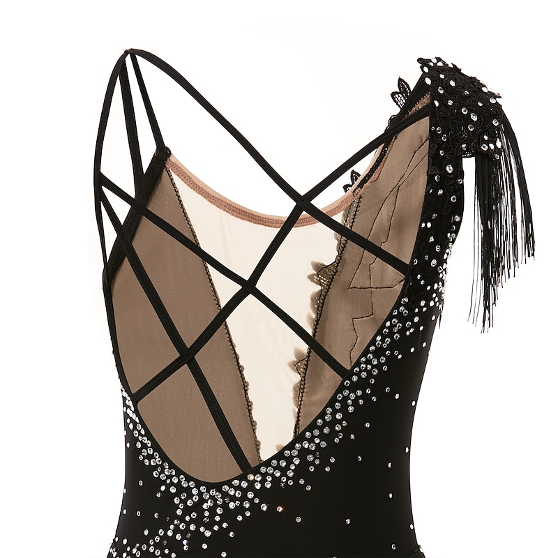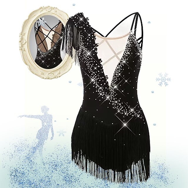 More information about Figure Skating Dress Women's Girls' Ice Skating Dress Black White Yellow Criss Cross Tassel Mesh Spandex High Elasticity Competition Skating Wear Sleeveless Latin Dance Ice Skating Winter Sports