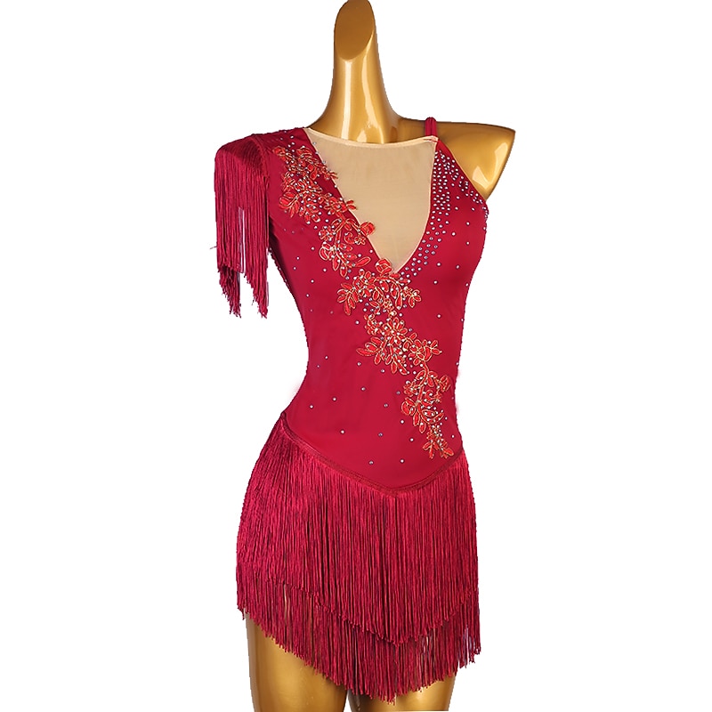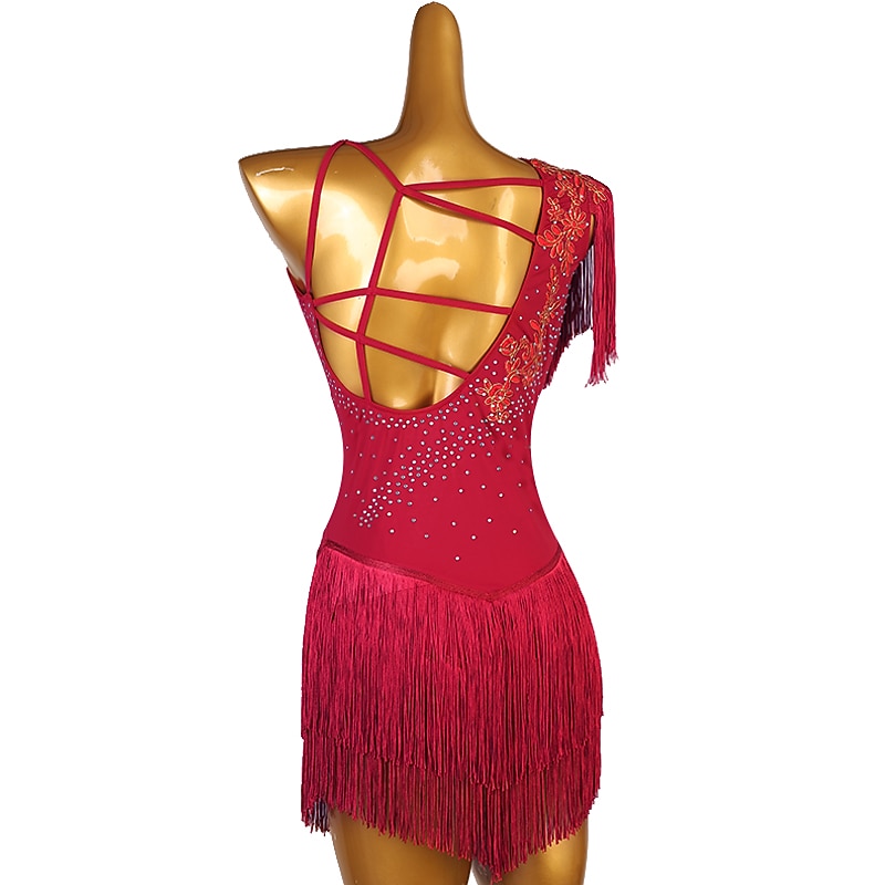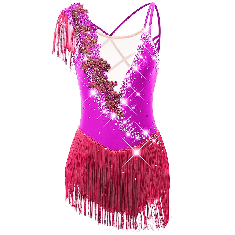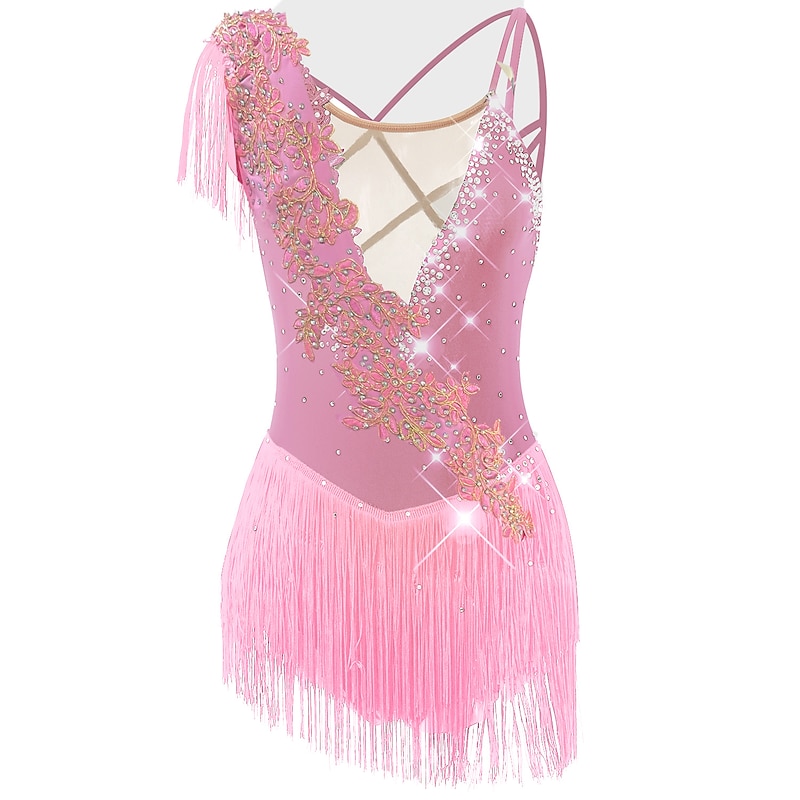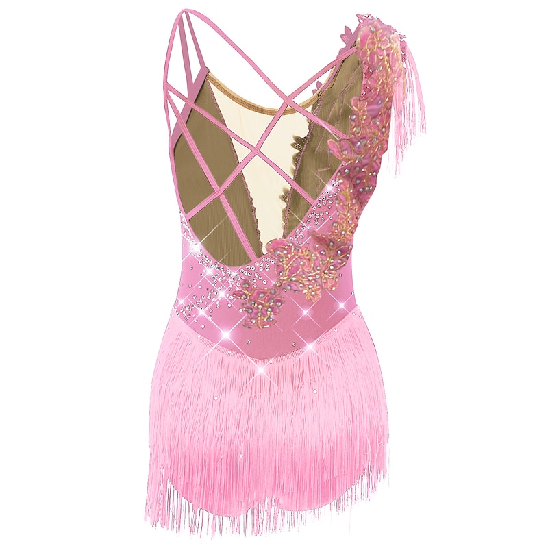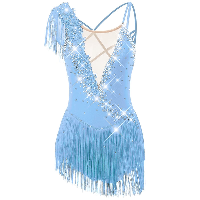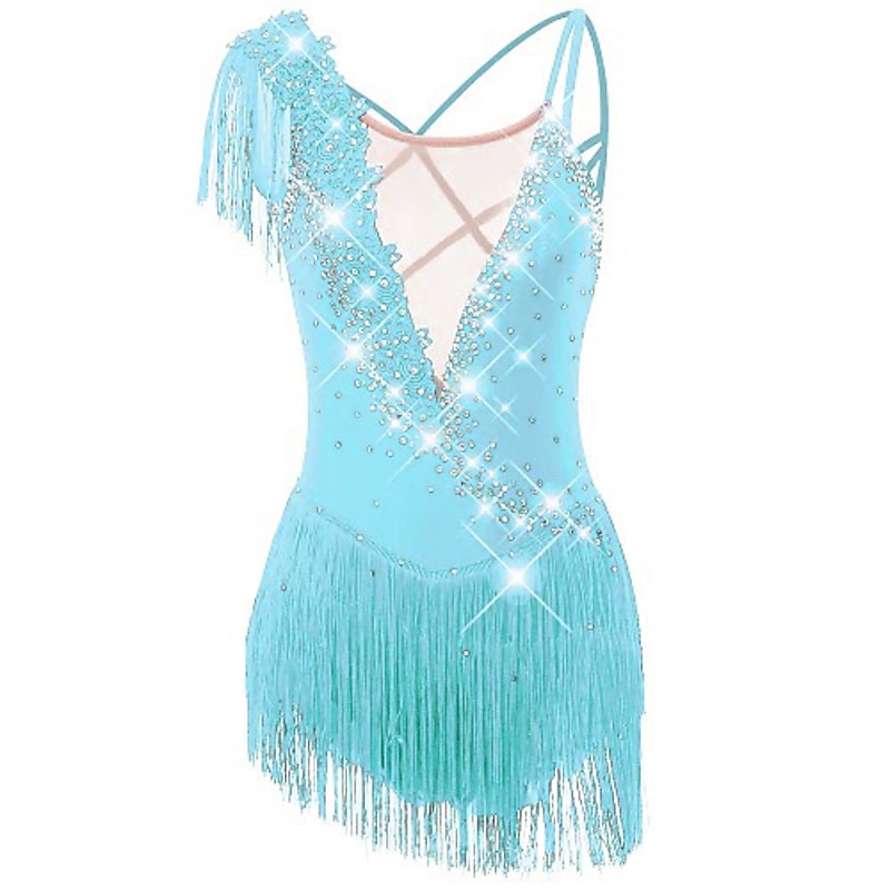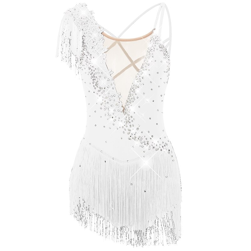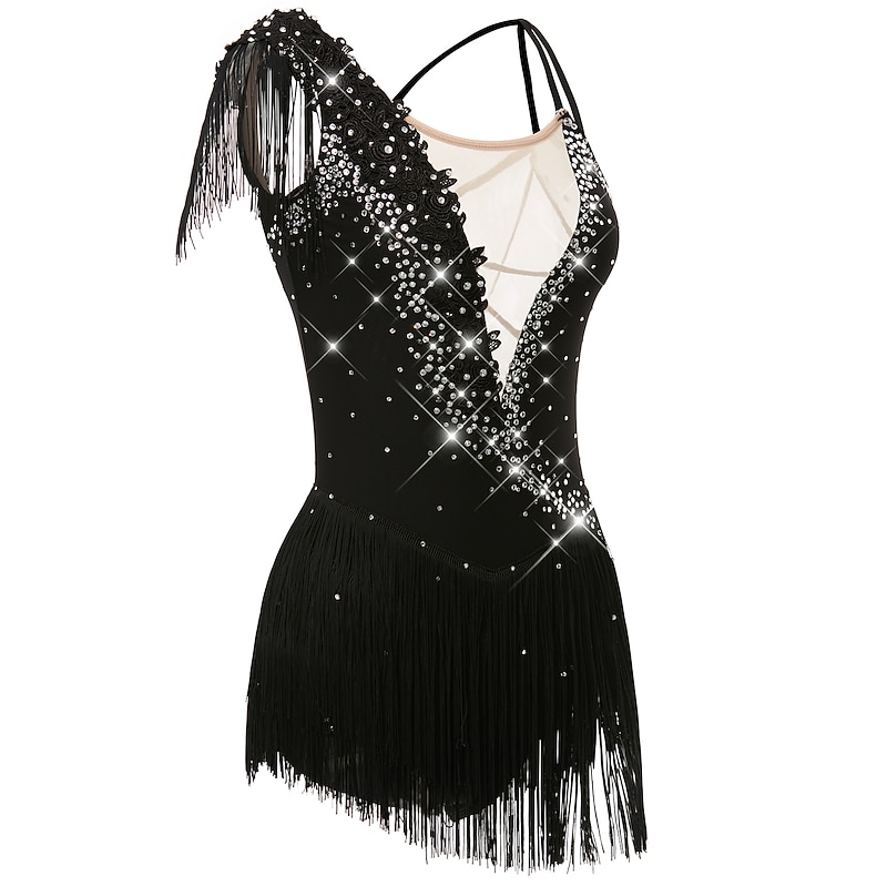 Highlights - Stunning rhinestone embellishments add a touch of glamour to this garment - Made with a comfortable and flexible spandex and mesh fabric - Sleeveless design for freedom of movement during Latin dance activities - Designed for both women and girls who want to feel confident and stylish - High elasticity allows for the perfect fit for any body type - Eye-catching criss-cross design adds a contemporary vibe - Unique asymmetric hem adds a touch of drama and elegance to your look.