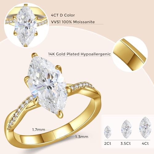 More information about 4CT Marquise Cut Moissanite Engagement Ring for Women, Moissanite Wedding Rings 14K Gold/White Gold Plated, Promise Travel Band for Anniversary, Size 5-10