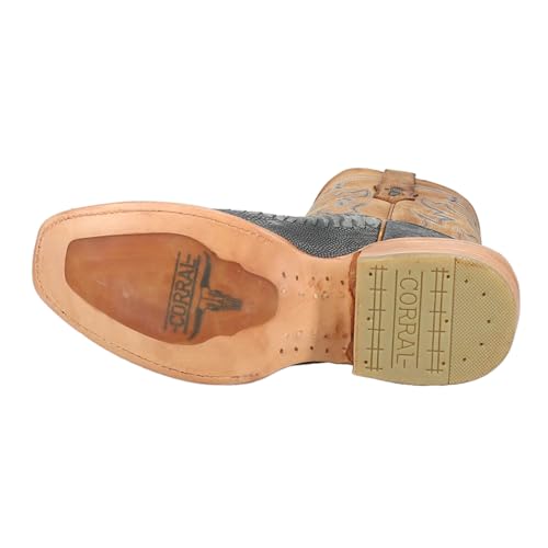 CORRAL MEN'S BLUE/SAND OSTRICH LEG EMBROIDERY NARROW SQ. TOE, LEATHER WITH RUBBER INSERT SOLE, WESTERN A4294 5