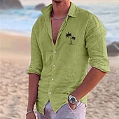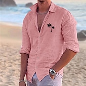 HOT ! Men's Shirt Linen Shirt Beach Shirt Coconut Tree Outdoor Vacation White Pink Blue Green Long Sleeve Turndown Summer Spring Clothing Apparel Print