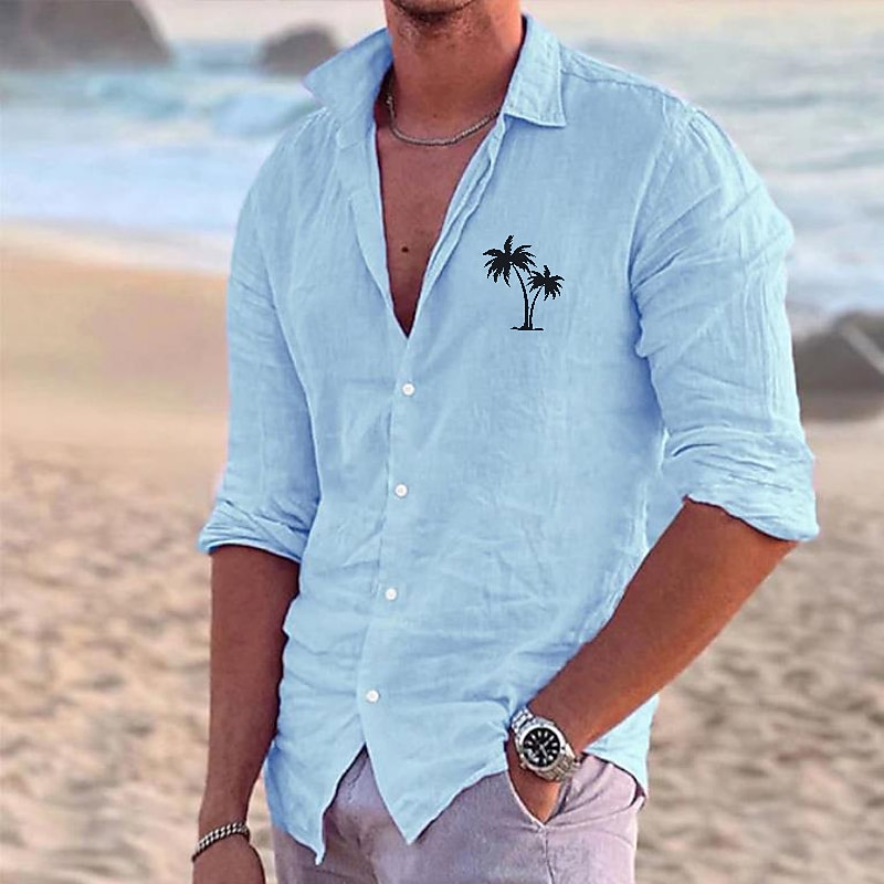 Highlights Introducing a fabulous men's linen shirt featuring an eye-catching coconut tree graphic print Lovingly created by our design partner it's a blend of polyester and linen guaranteeing softness and durability The shirt brings a stylish touch to streetwear with its turn-down collar and long sleeves Perfect for everyday wear or a casual night out it fits well in any season Washing is a breeze it is machine and hand-wash friendly A true reflection of you – an extra-ordinary individual