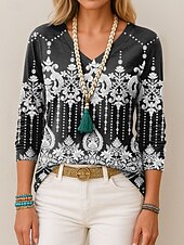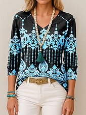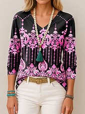 More information about Women's T Shirt V Neck Long Sleeve Tunic Graphic Paisley Vintage Stylish Casual Regular Tops Daily Print Yellow Pink Blue Green Gray Spring Fall