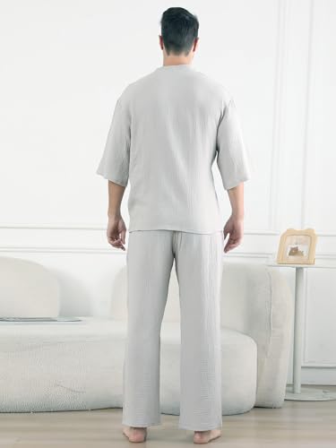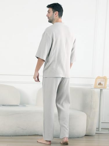 • 【Lightweight Fabric】Our men's kimono pajama sets crafted from soft 100% cotton materials, ensures comfort and breathability for a good night's sleep. It also has strong water absorption and can be used as a bathrobe at the same time.