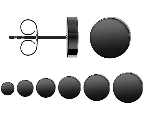 7 Pairs Black Earrings Surgical Steel Studs Hypoallergenic 316L Stainless Steel Stud for Men Women Contain 3,4,5,6,7,8,10 mm 6