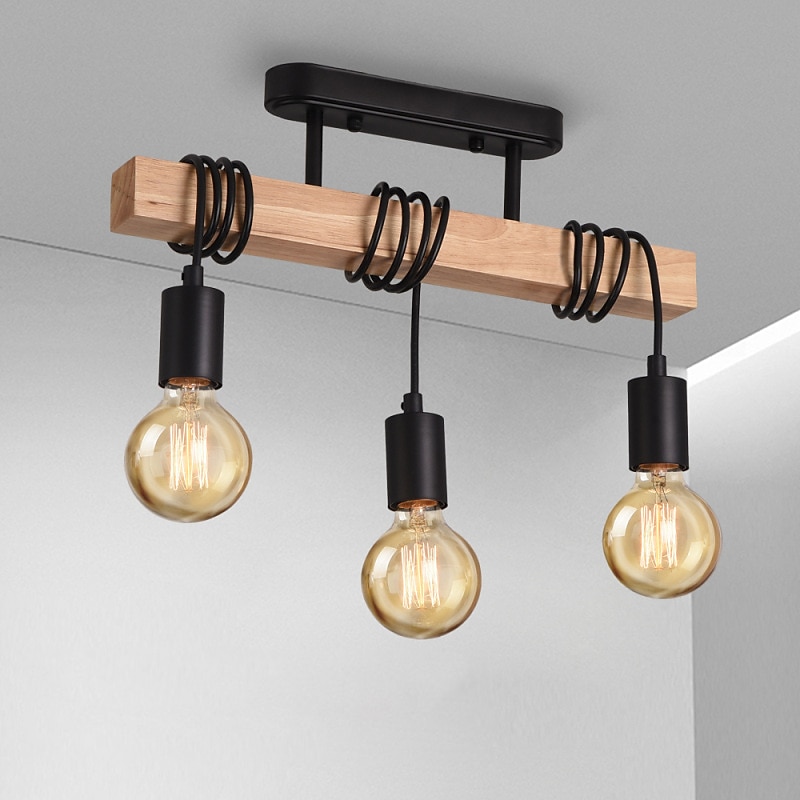 LED Pendant Light Industrial Wood with 3 Heads Adjustable Pendent Chandelier Light Vintage Semi Flush Ceiling Light Living Room E27 Bulb Drop Light Kitchen Dining Room Black Hanging Light 8