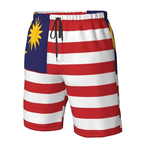 Malaysia Flag Men's Beach Pants-Quick-Dry & Comfortable Mens Beach Shorts for Men, Perfect for Surfing and Everyday Wear White 6