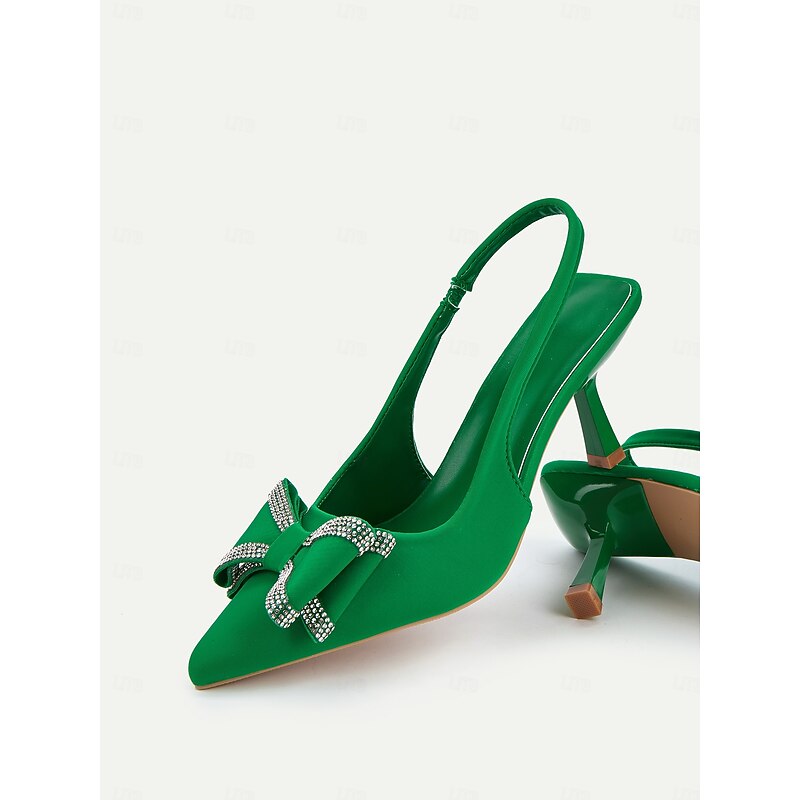 More information about Women's Green Slingback Kitten Heels with Rhinestone Bow - Elegant Pointed Toe Pumps for Daily Gatherings, Parties, and Formal Occasions