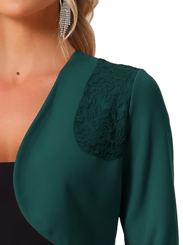 Allegra K Women's Elegant Bolero Shrugs Lace Insert Business Office Open Front Crop Cardigan 1