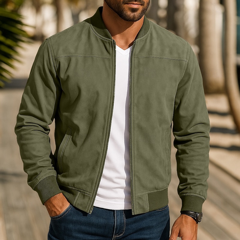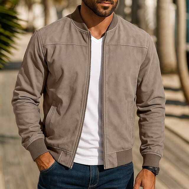 More information about Men's Outdoor Jacket Faux Suede Jacket Bomber Jacket Formal Home Zipper Pocket Fall Winter Solid Color Active Neutral Collar Regular Black Navy Blue Blue Brown Green Jacket