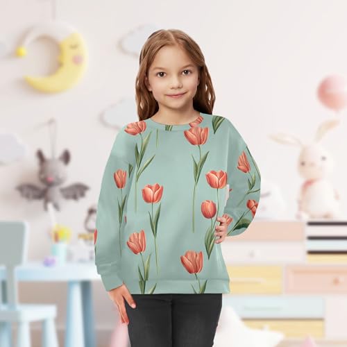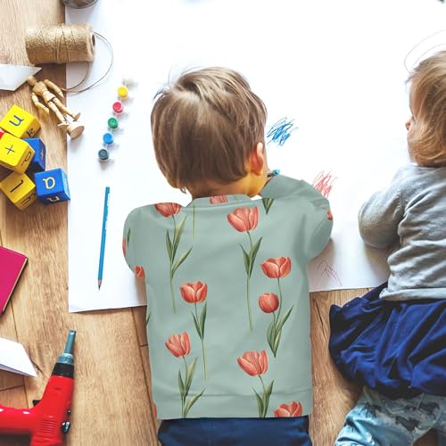 JUNZAN Cute Tulips Sage Green Little Girls Sweatshirt Hoodie Fleece Sweatshirt With Hoodie Camping 4T 6