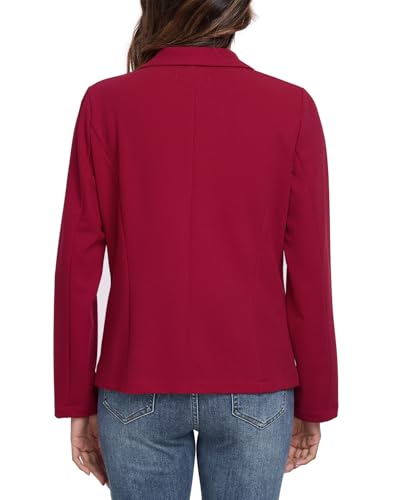 Blazers for Women Long Sleeve Lapel Button Blazer Business Work Office Jackets with Pockets, Red 6