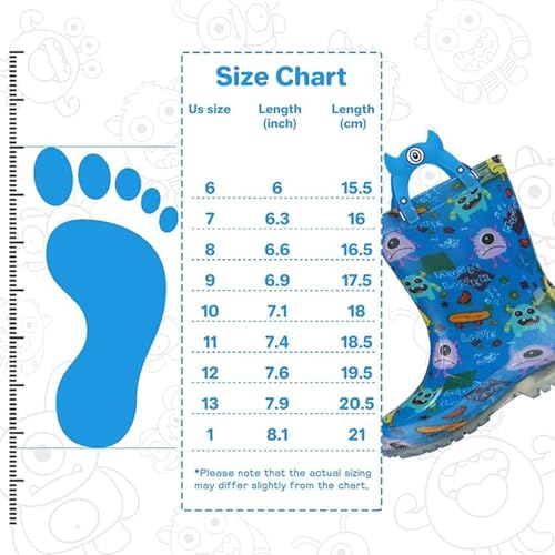 • Unique design: JSLOVE children's rain boots are ergonomically designed and feature a unique little monster print, making them perfect for boys and girls aged 3-10. The unique little monster shaped handle design allows children to easily put on and take off rain boots.
