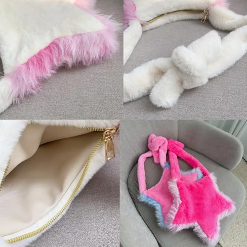 Fuzzy Crossbody Bag Star-shaped Y2K Fluffy Shoulder Bag Women Furry Purse Plush Faux Fur Bag Autumn Winter 4