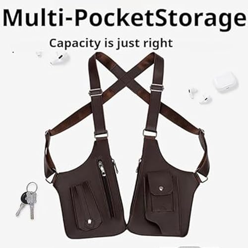 Armpit Bag for Men, Double Shoulder Strap Multi-pocket Outdoor Anti-Theft Tactical Bag, For Cycling, Cross-Country, And Marathons (Black+Dark Brown) 5