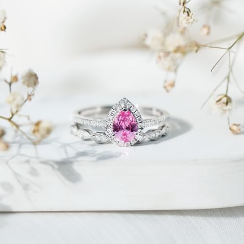 HOT ! Lab Grown Pink Sapphire Diamond Wedding Ring Set, AAAA Quality, Certified Sapphire Diamond Teardrop Ring - With Jewelry Box