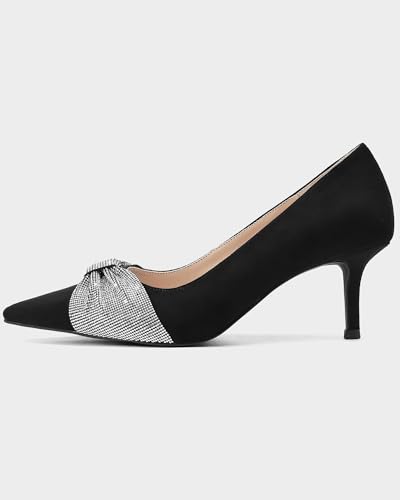 MUCCCUTE Women's Pumps Kitten Heels Closed Toe Heels for Women Pointed Toe Rhinestones Bow Office Dress Shoes 6