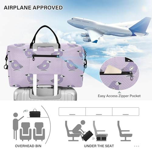 Oliver Jeffers Style Kiwi Jade Bird Design Purple Decorative Large Travel Bag Gym Sports Carry with Adjustable Strap for Airplane Traveling Large Capacity bolso de para Hombre