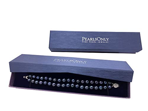 • This Pearl Bracelet features two strands of beautiful and alluring 8-9mm Freshwater Black Pearls will be noticed. Slip on the Black 8-9mm A Quality Freshwater Pearl Bracelet the (A) out of round pearls will add to the unique character while the (AA) luster glistens off the surface only to be replaced by the glistening power of another. Each pearl is hand strung on a fine double knotted silk thread and separated with a hand tied double knot to avoid accidental damage.