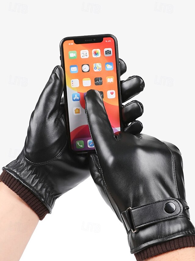 $14.99 - Men's Winter Faux Leather Gloves with Buckle Strap – Warm Lined Gloves for Cold Weather, Touchscreen Compatible 2025. Shop for cheap Men' Gloves online? Buy at lightinthebox.com on sale today!