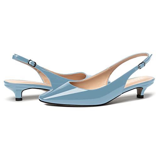 MERRORI Women's Slingback Buckle Patent Square Toe Kitten Low Heel Pumps Business Work Dress Shoes 1.5 Inch 1