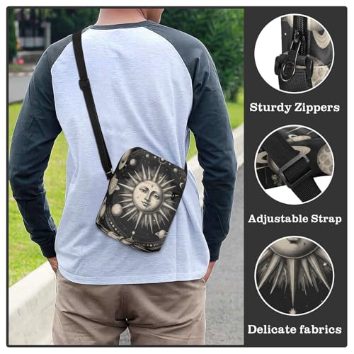 Crossbody Sling Bag for Women Men, Zipper Closure Messenger Bags Vintage Celestial Print with Card Phone Passport Compartment 6.6×9.4×2.5 IN 1