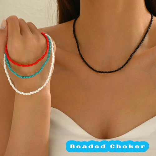 Yalice Boho Choker Necklace Chain Rice Beaded Necklaces Summer Surfer Costume Neck Accessories for Women 5