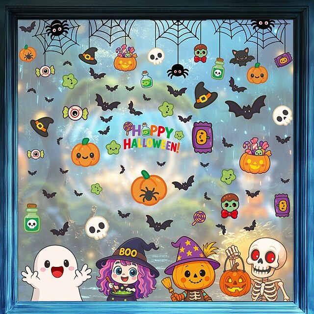 $9.49 - 5 Sheets Halloween Window Cling Wall Sticker Decals Decorations, Cartoon Pumpkins, Skulls, Ghosts, Spider Webs & Bats, Static Cling, Halloween Party Home Decor 2025. Shop for cheap Halloween Stickers online? Buy at lightinthebox.com on sale today!