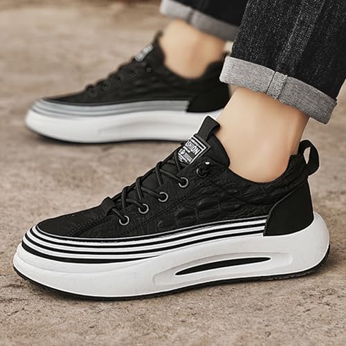 Men's Canvas Dress Casual Shoes,Lightweight Comfortable Elastic Lace-Up Non-Slip Cushion Jogging Print Fashion Sneakers 6