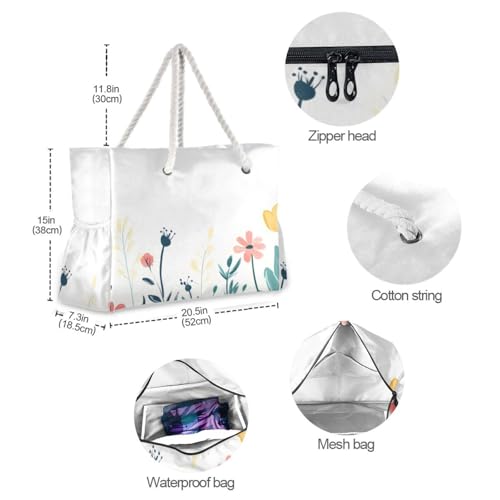More information about Spring Bloom Florals Beach Tote Bag - Waterproof Travel Bag with PVC Compartment, Oversized Pool Tote for Vacation Essentials, Vintage Nylon Beach Accessory for Multipurpose Storage