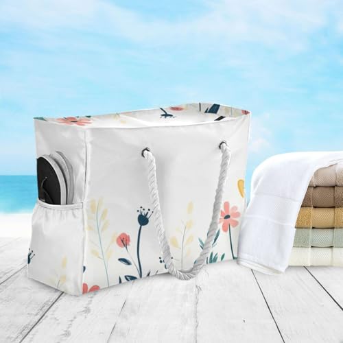 HOT ! Spring Bloom Florals Beach Tote Bag - Waterproof Travel Bag with PVC Compartment, Oversized Pool Tote for Vacation Essentials, Vintage Nylon Beach Accessory for Multipurpose Storage