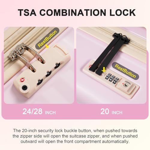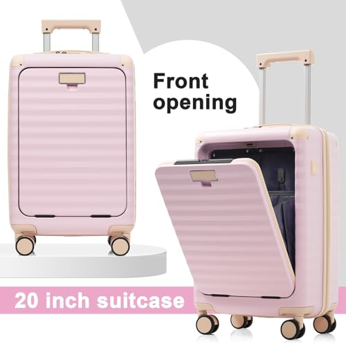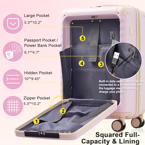 5 Piece Luggage Set w/TSA Locks & USB Port, Front Opening Hard Shell Luggage Sets, Expandable Suitcase Set with Wheels and Cup Holder(20"/24"/28") (Pink) 4