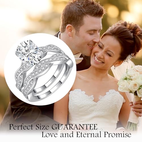 6CT Oval Engagement Rings for Women, Promise Wedding Cubic Zirconia White Gold Plated Band Set for Women, Size 5-10 5