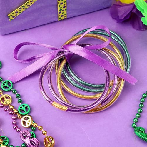 • Mardi Gras Set: These Mardi Gras glitter jelly bracelets are composed of 3 classic colors of Mardi Gras-purple, green and gold, totaling 9PCS, and each color represents the joy and enthusiasm of the festival. In addition to Mardi Gras bracelets, the Mardi Gras accessories set is also equipped with matching bow ribbon to add more highlights to your dress