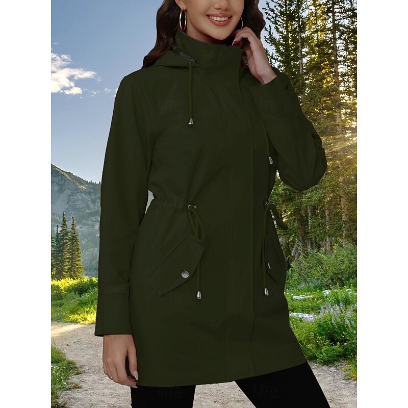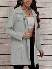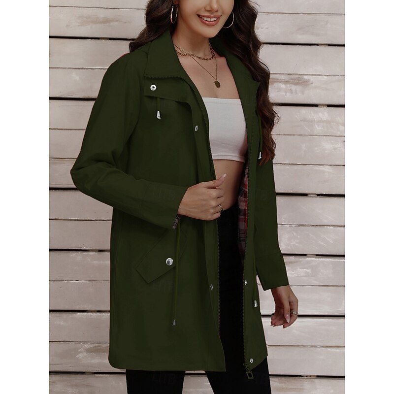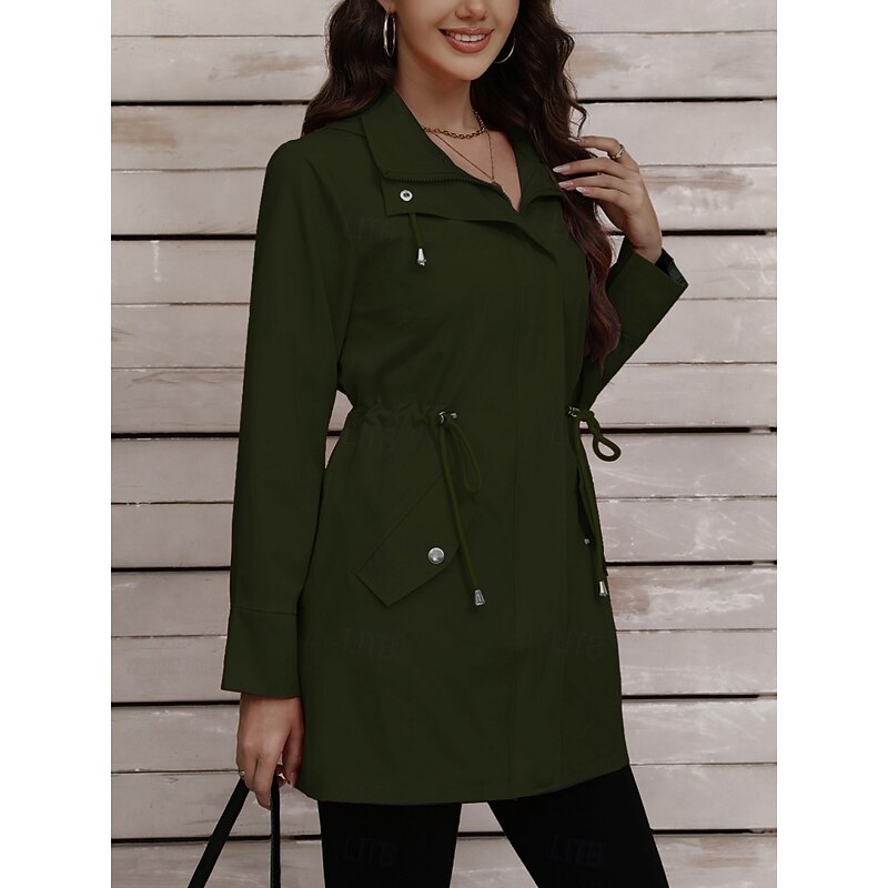 More information about Women's Casual Jacket Comfortable Breathable Pocket Casual Plain Vacation Street Casual Daily Wear Zipper Long Turndown Regular Fit Long Sleeve Outerwear Red Navy Blue Army Green Spring Fall