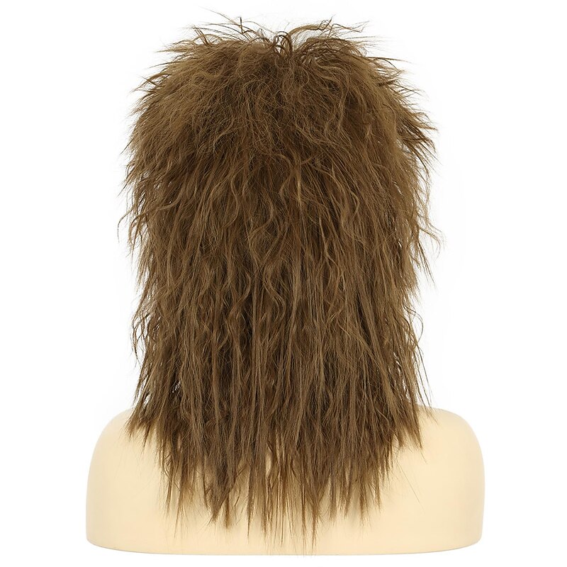 Women Men Long Curly Brown Wig 70s 80s Rocker Mullet Costume Wig Carnival Cosplay Party Wig Halloween Wigs 4