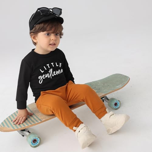 • Classic Color Matching Clothes Set: Letter print long sleeves crew neck pullover sweatshirt top with casual solid elastic waist sweatpants, suitable for baby boy spring and fall to wear