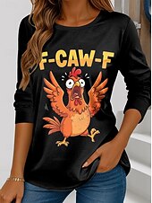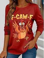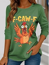 More information about Women's Tunic Graphic Rooster Letter Vintage Fashion Stylish Long Sleeve Crew Neck Regular Tops Daily Print Black Red Blue Green Spring Fall