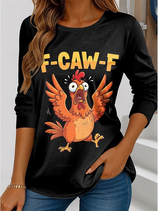 HOT ! Women's Tunic Graphic Rooster Letter Vintage Fashion Stylish Long Sleeve Crew Neck Regular Tops Daily Print Black Red Blue Green Spring Fall