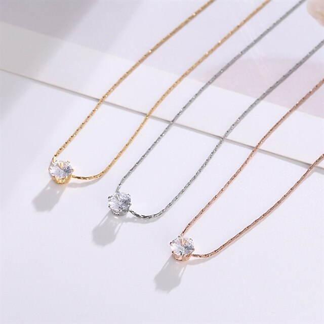 Highlights [Fabric] Each necklace is crafted from high-quality alloy, ensuring both durability and a polished finish. The choice of classic metal colors – gold, silver, and rose gold – adds a touch of luxury, making it a versatile addition to any jewelry collection. [Fit] Designed as a choker, these necklaces rest comfortably on the collarbone, providing an elegant and modern silhouette that enhances any neckline. The lightweight construction ensures they are suitable for extended wear without discomfort. [Design Highlights] Featuring a geometric pendant design, each necklace boasts a shimmering, round-cut cubic zirconia. The intricately faceted stone reflects light beautifully from all angles, adding a subtle yet stunning sparkle that elevates any look. [Occasions] Perfect for a range of occasions, including Christmas parties, evening gatherings, birthday celebrations, and casual beach outings. These necklaces are a stylish choice for both gifting and personal wear, offering a chic accessory that complements both casual and formal outfits. [Size] This necklace is available in a standard choker length, suitable for most wearers. The adjustable chain allows for a customized fit, ensuring it can comfortably accommodate different preferences and neck sizes.
