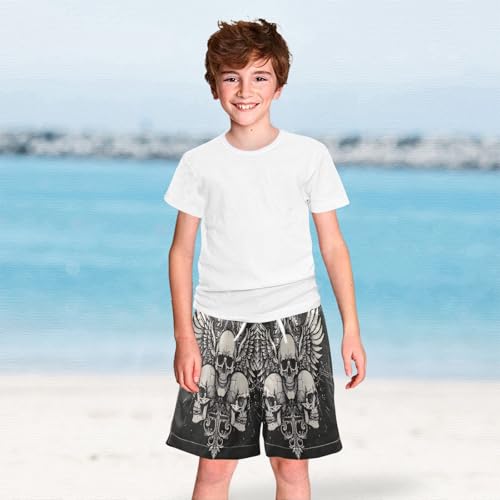 Swimming Trunks for Kids, Anti-Chafe Swim Trunks Boys 2 T, Skulls with Wings on Black 6