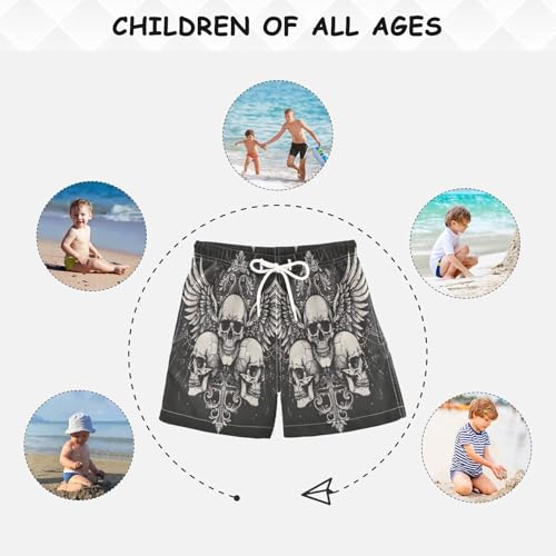 Swimming Trunks for Kids, Anti-Chafe Swim Trunks Boys 2 T, Skulls with Wings on Black 4