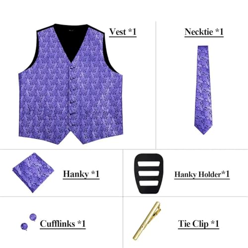 Men's Novelty Silk Vest Set Textured Sleeveless Waistcoat with Necktie Hanky Cufflinks for Wedding Business 6