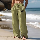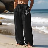 More information about Men's Anchor Linen Pants Pants Trousers Baggy Pants Mid Waist Vintage Outdoor Daily Wear Streetwear Side Pockets Elastic Drawstring Design Black White Blue