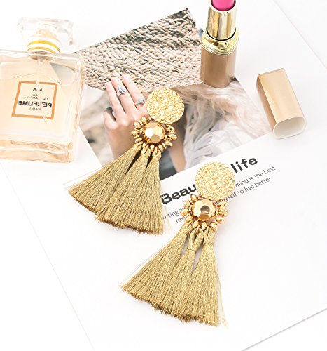 trending ! boderier Bohemian Statement Thread Tassel Chandelier Drop Dangle Earrings with Cassandra Button Stud