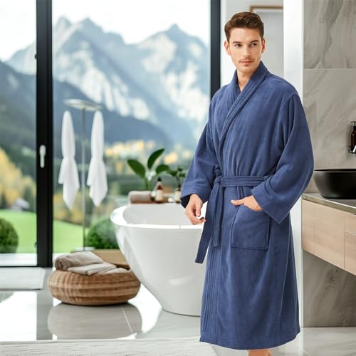 ZABER Bathrobe Mens,Pure Cotton Robe for Men,Thick Terry Cloth Bathrobe,Luxury Long Combed Men's Cotton Robe 5