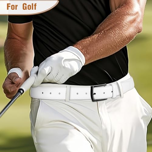 Men's Belt Leather Belt for Men Dress Casual Golf Jeans Pants 1 3/14" (White) 4