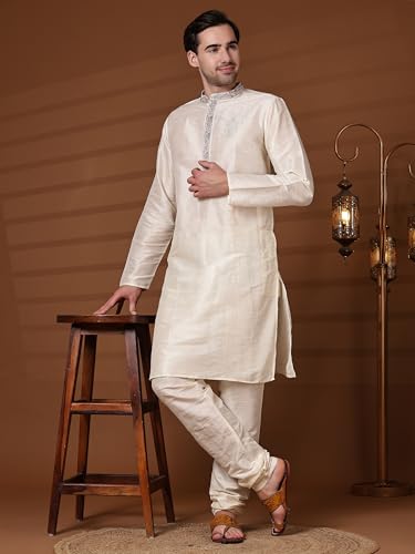 • Complete Set – Comes with a matching beige churidar pajama that complements the kurta for a complete ethnic outfit.