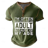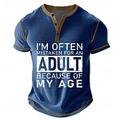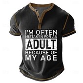 HOT ! Men's Funny 'I'm Often Mistaken for an Adult Because of My Age' Graphic Short Sleeve Henley T-Shirt, Ribbed Casual Top