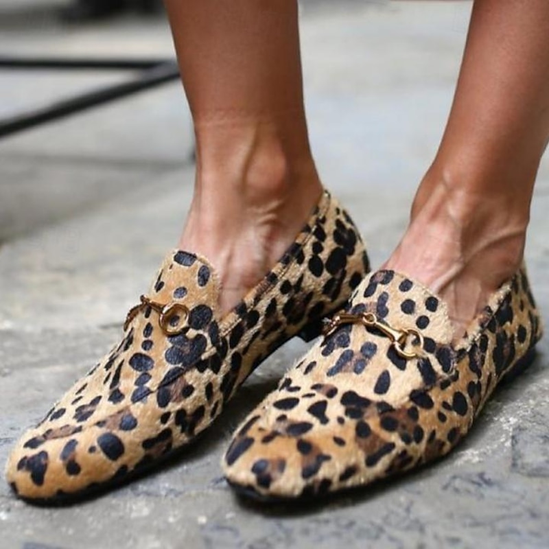 HOT ! Women's Leopard Print Loafers with Metal Buckle – Casual Animal Print Slip-On Shoes for Everyday Wear